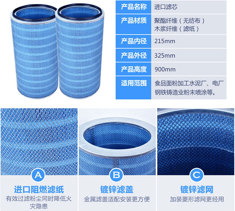 可用水洗。此濾筒適用既有纖維性粉塵又有非纖維性粉塵的應(yīng)用、易聚結(jié)性粉塵的應(yīng)用、以及在使用中需要對濾筒進(jìn)行水洗之應(yīng)用。例如:木材加工、谷物處理、復(fù)合材料的打磨、金屬拋光以及食品加工和制藥等應(yīng)用。