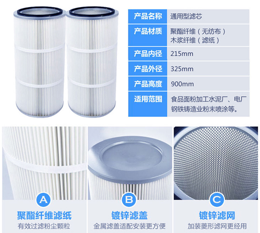 電力設備除塵濾筒尤其適用既有纖維性粉塵又有非纖維性粉塵之場合,