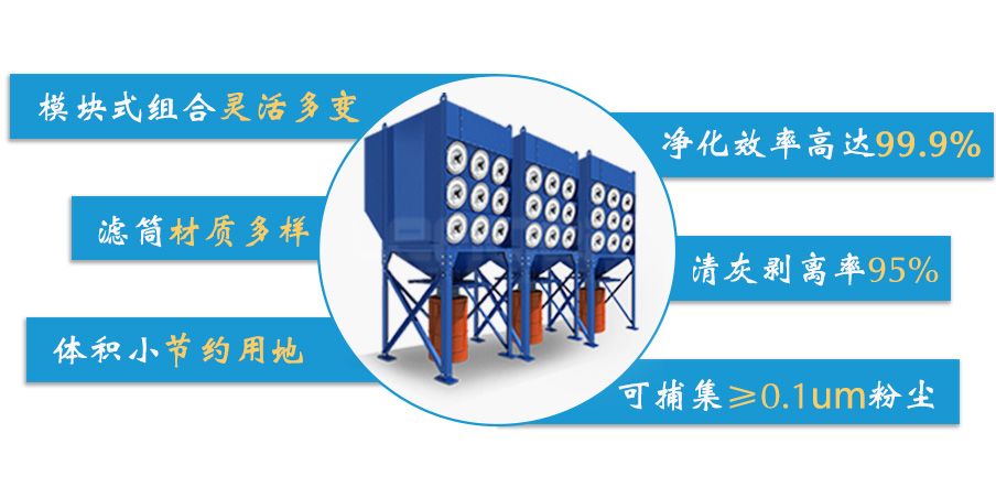 濾筒除塵器主要針對治理在機械加工、化工生產、粉料回收、建筑制造、醫藥生產、食品加工、家具生產和五金加工等行業生產時產生大量對人體有害的粉塵顆粒而設計的,處理風量4000~150000m3/h,不同的組合滿足不同風量需求,可滿足生產車間多工序的粉塵收集處理,收集方式有移動吸臂式和固定吸罩等方式,最 大程度減少粉塵逸散到車間內,保障車間工作環境。